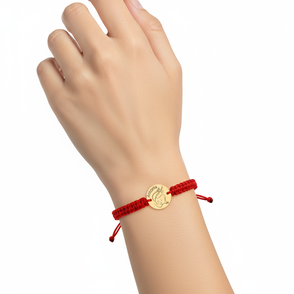 This meaningful bracelet celebrates the unbreakable connection between a mother and her child. The 14K gold disc is delicately engraved with a touching scene — a mother gently kissing her baby’s forehead, symbolizing love, tenderness, and protection.